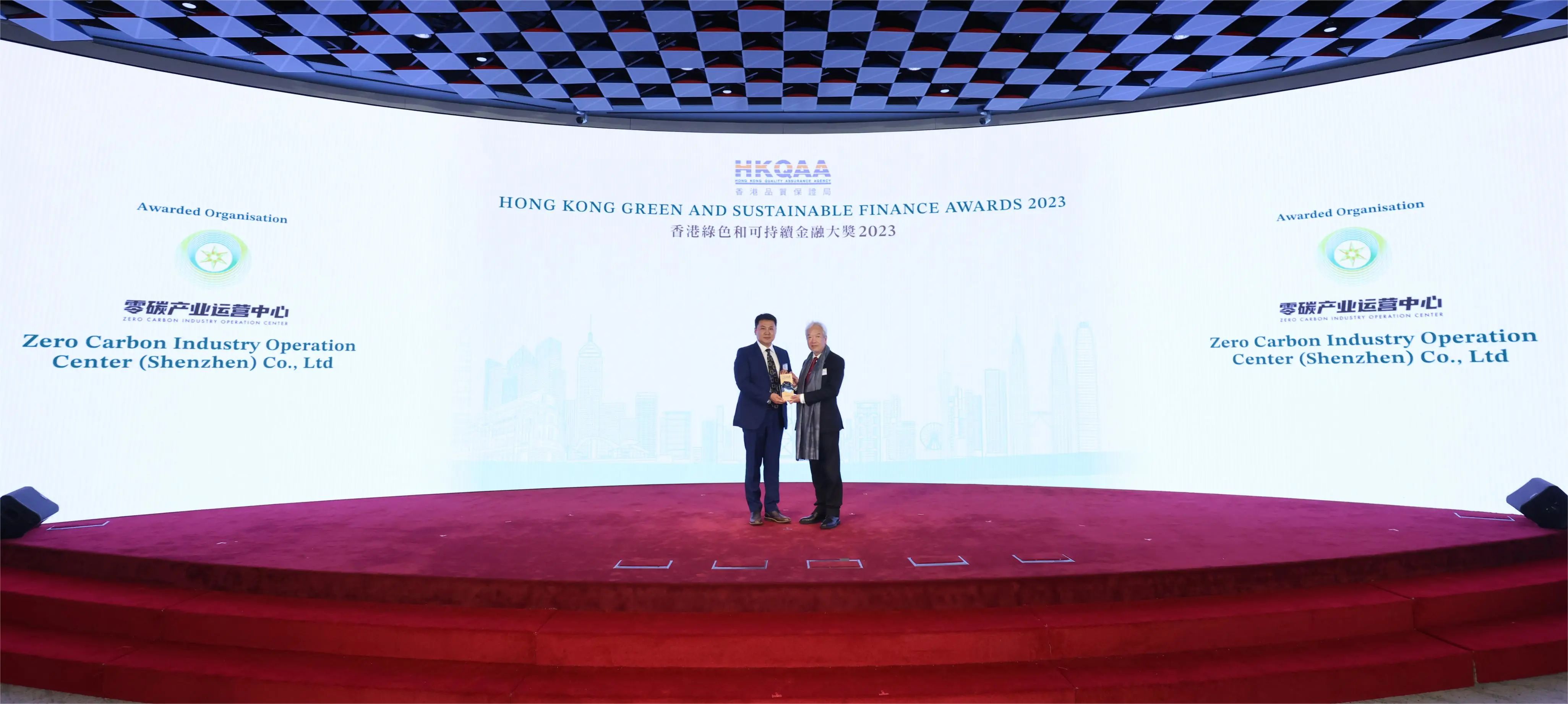 11月30日下午,香港品质保证局国际专题研讨会“可持续金融、 ESG及气候适应 • 香港 2023”及颁奖典礼在香港交易所交易广场隆重举行。零碳产业运营中心总经理闫志伟先生受邀出席会议,并代表接受大会颁发的“香港绿色和可持续金融大奖-杰出碳中和贡献管理大奖(机构营运作业)-卓越远见碳中和策略成果”。